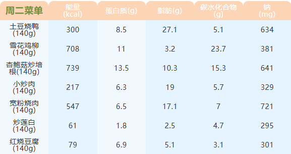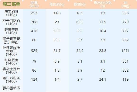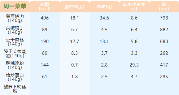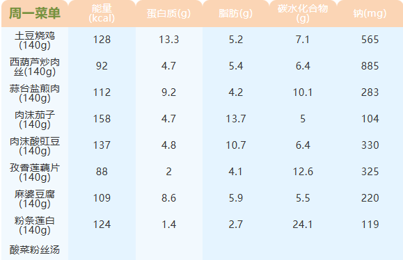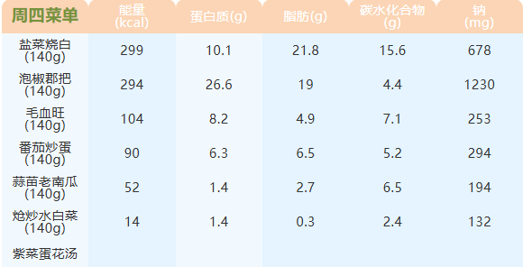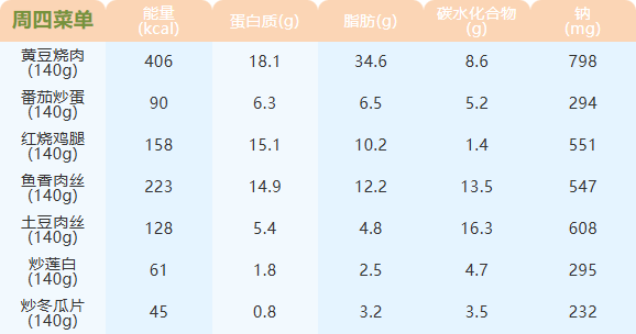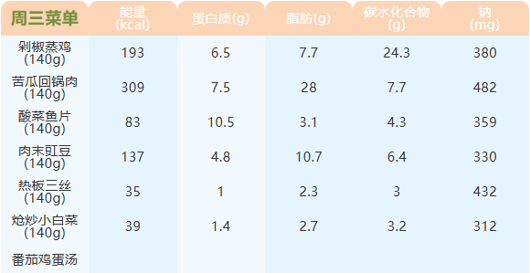 重庆女职中第四周菜谱