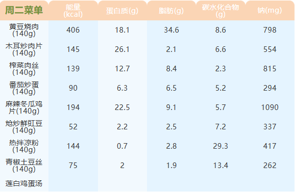 重庆女职中第七周菜谱