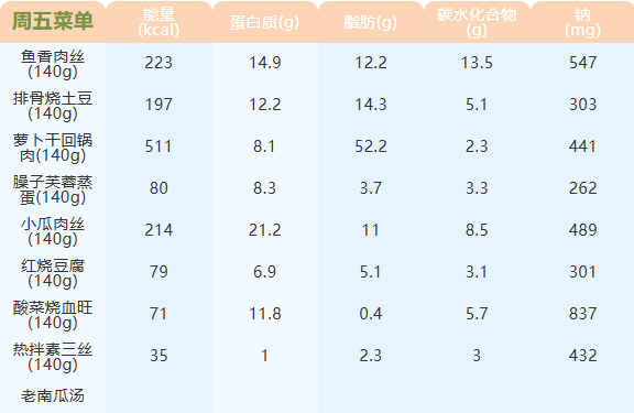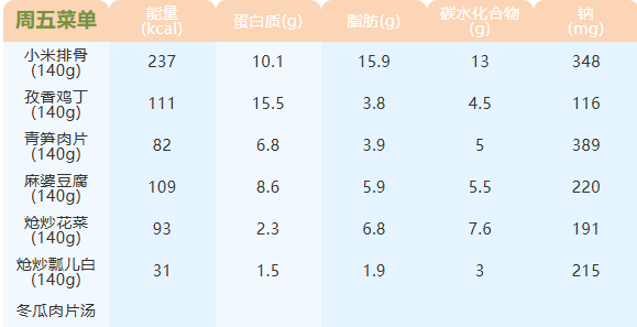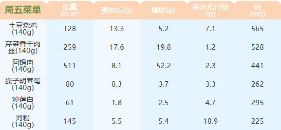 重庆女职中第五周菜谱