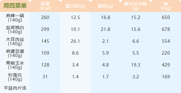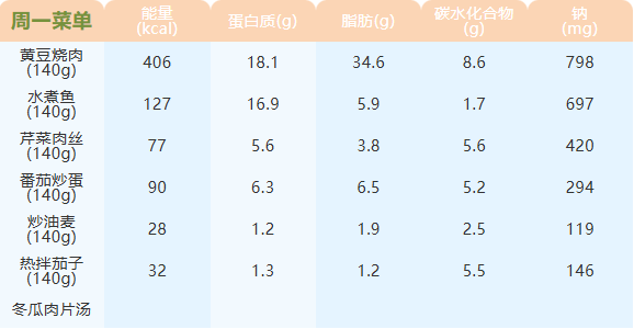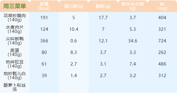 重庆女职中第七周菜谱