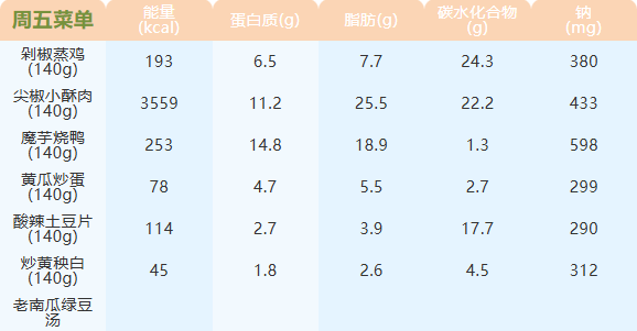 重庆女职中第五周菜谱