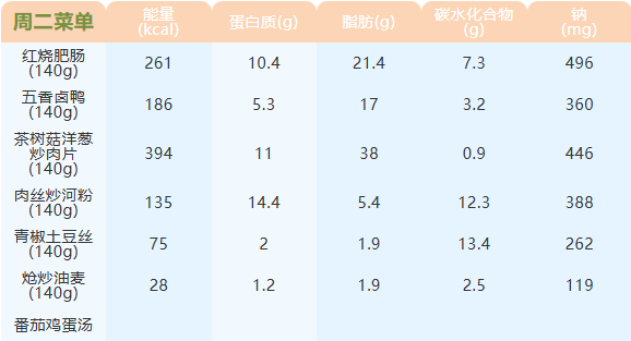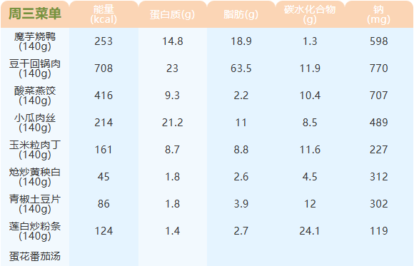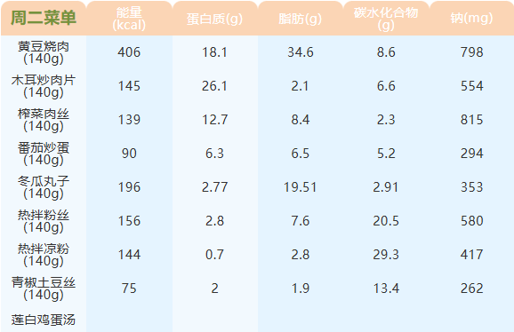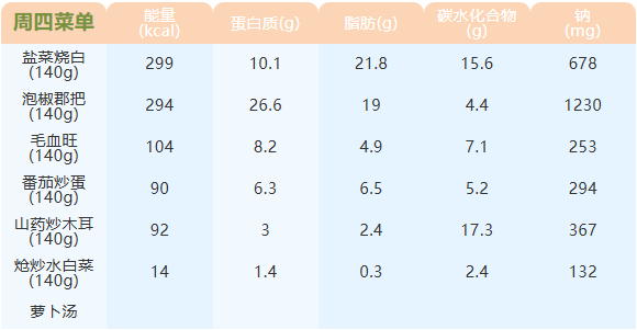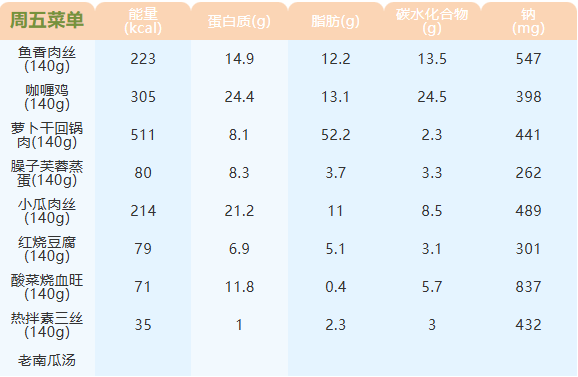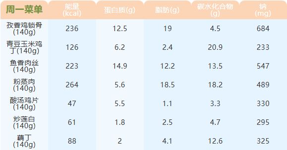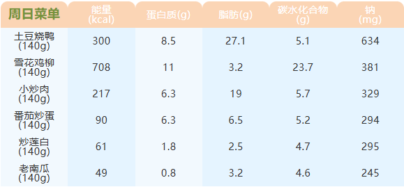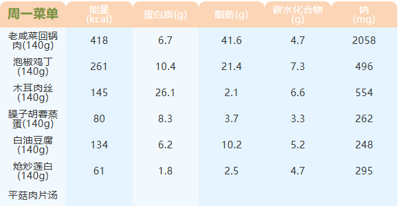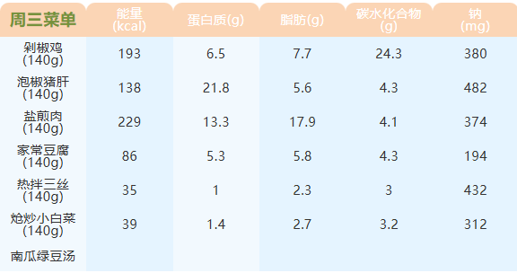 重庆女职中第十三周菜谱