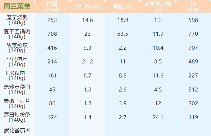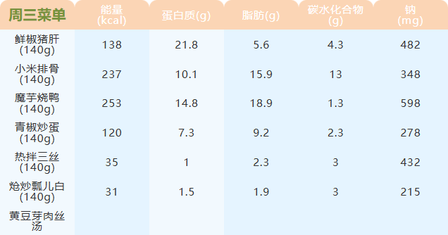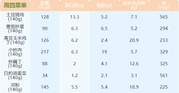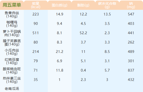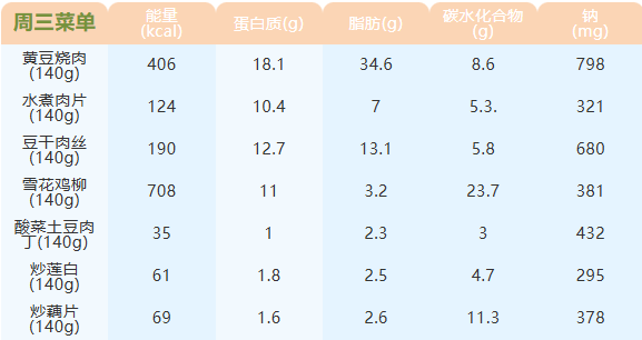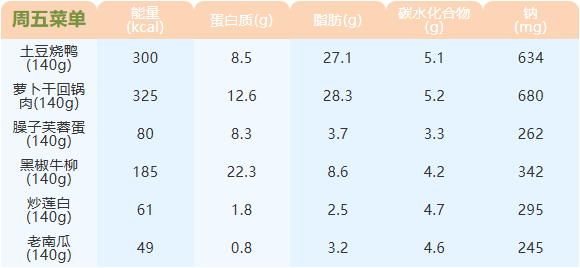 重庆女职中第二十一周菜谱