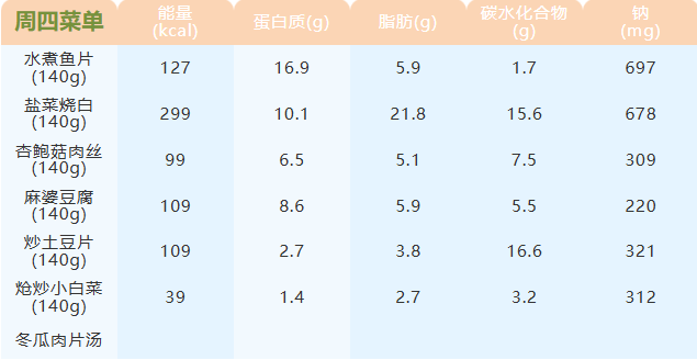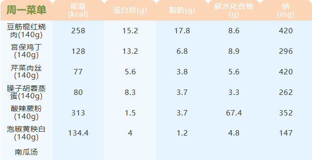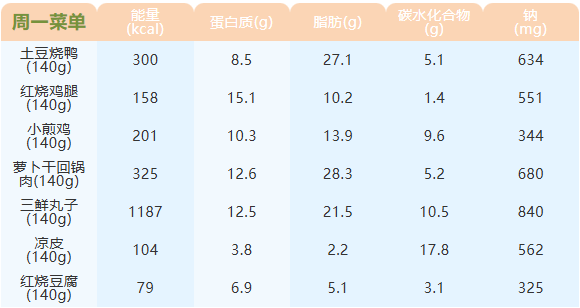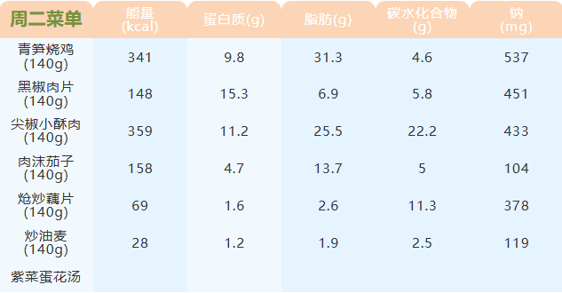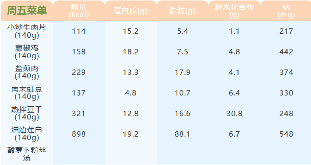 重庆女职中第二十周菜谱